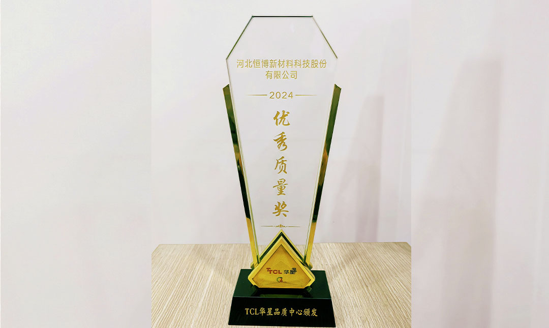 河北恒博新材料科技股份有限公司產(chǎn)品銦錫氧化物材料(ITO靶材),榮獲TCL華星光電品質(zhì)中心頒發(fā)的“優(yōu)秀質(zhì)量獎(jiǎng)”。